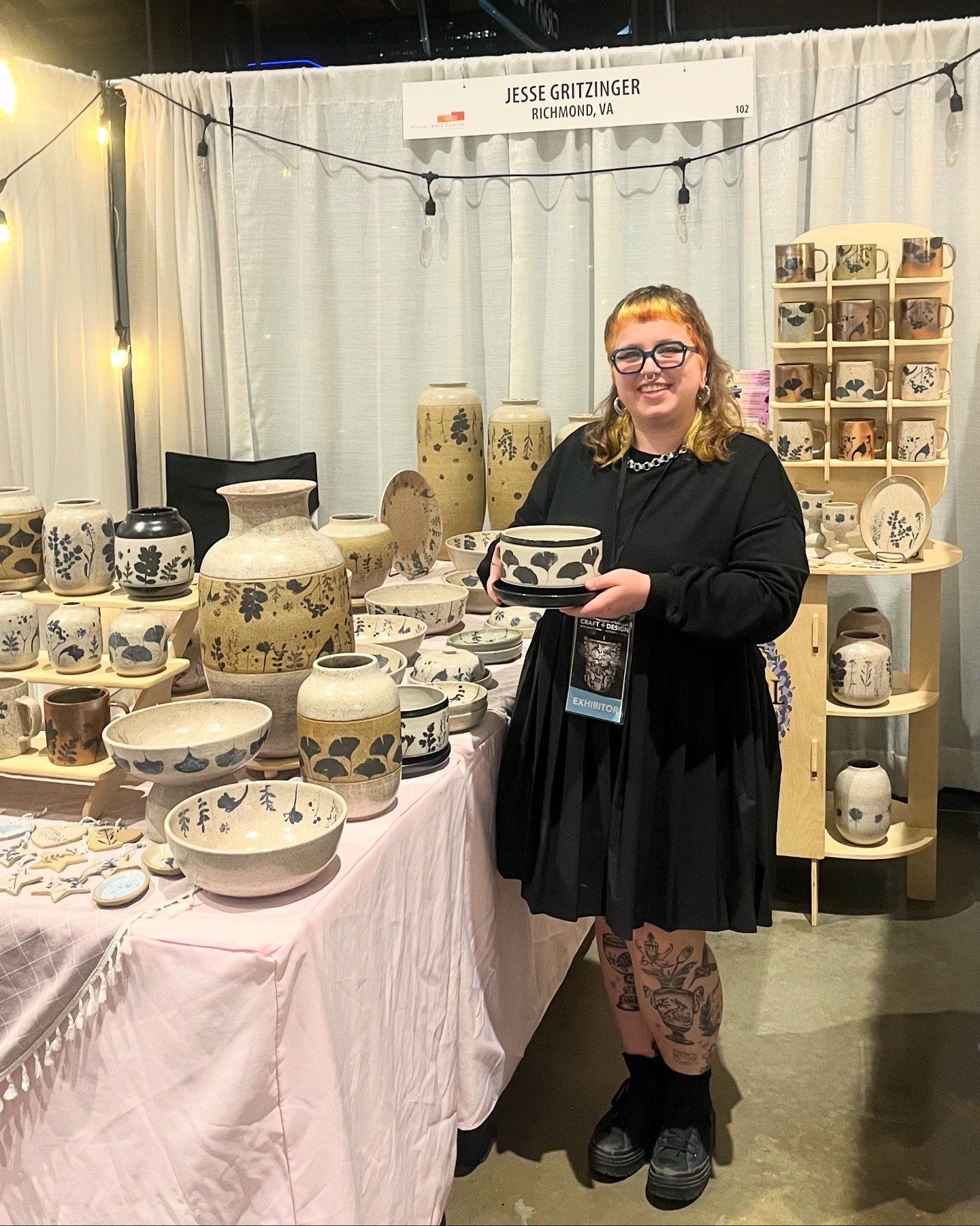 Jesse Gritzinger of Throws Like a Girl Ceramics is a potter and educator based at 43rd Street Studios in Richmond, Virginia. Jesse began her ceramics journey in 2013, later graduating from Virginia Commonwealth University with a BFA in Craft and Material Studies focusing in ceramics.